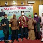 Penyerahan buku LAMPUNG TEMPO DOELO oleh penulis, Iwan Nurdaya Djafar kepada Duta Baca Indonesia, Golagong Penulis, didampingi Ketua Dewan Kesenian Lampung, Prof. Satria Bangsawan dan pengulas buku, Udo Z Karzi.Bandarlampung, 3 Des 2021.