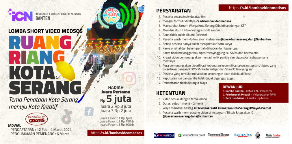 GOLAGONGKREATIF.com, Serang – Halo sobat kreatif & content creator. Kota Serang sebagai Ibukota Provinsi Banten masih harus memiliki pesona, keunikan serta menjadi kota yang mendukung kreatifitas dan inovasi warganya. Upaya ini kita bisa rasakan dengan beberapa penataan yang sedang dilakukan oleh Pemerintah Kota Serang melalui Dinkopukmperindag Kota Serang.