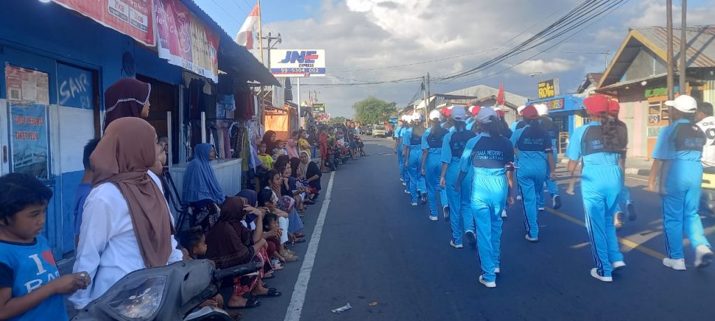 Hampir setiap titik yang dilewati peserta masyarakat begitu antusias menyaksikan keseruan tiap sekolah dalam mengkreasikan gerak jalan, ada yang sambil bernyanyi lagu-lagu nasional, sampai ada yang membentuk formasi.