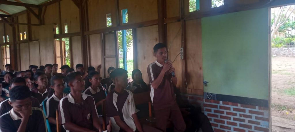 Forum TBM Flores Timur juga mendonasikan buku untuk siswa terpilih dalam sesi memberikan pendapat terhadap materi yang diberikan. Beberapa guru yang hadir, di antaranya Bunda Dora, sangat senang dengan acara ini. Sapaan peserta didik di sini untuk guru laki-laki “ayah” dan ‘bunda” untuk guru wanita.