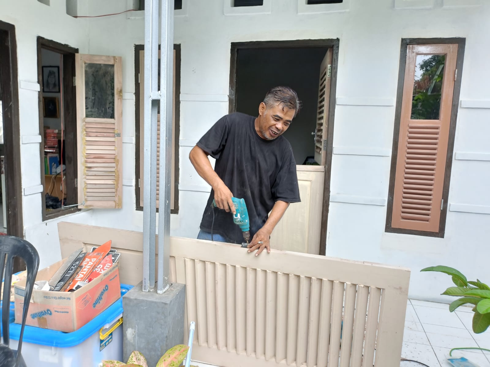 Saya mulai meletakkan pondasi Museum Literasi Gol A Gong sekitar September 2022. Saya, Mang Ihsan, dan Fadli. Kemudian September 2023, tukang berikutnya, Mang Ade, bergabung. Mereka sebetulnya tidak ahli, tapi saya lebih pada memberi mereka pekerjaan. Mereka tetangga-tetangga saya di kampung. Mereka tulang punggung keluarga.