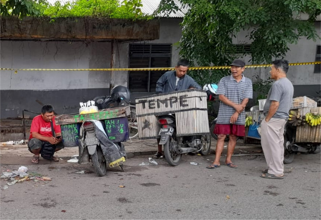 Saya mewawancarai para pedagang yang masih saja jualan di bibir police line. Mereka emak-emak yang berdomisili di kampung-kampung sekitar Ciceuri, Kaligandu, Cimuncang, dan Trondol. Mereka belanja sayur-sayuran, kue, ikan, dan telur di Pasar Rawu. Kemudian mereka berjualan di Taman Sari.