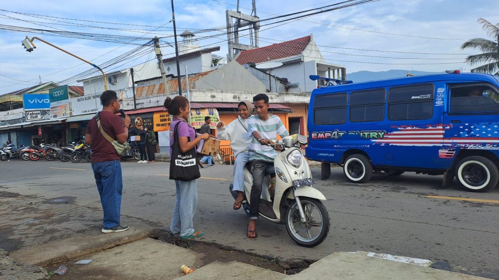 Nampak warga sangat antusias memberikan sumbangan secara sukarela. Tim yang didominasi kaum perempuan itu bergerak menyambangi setiap warga yang melitas. Tidak hanya pejalan kaki, warga yang menggunakan roda dua dan roda empat berhenti dan memberikan sumbangan.