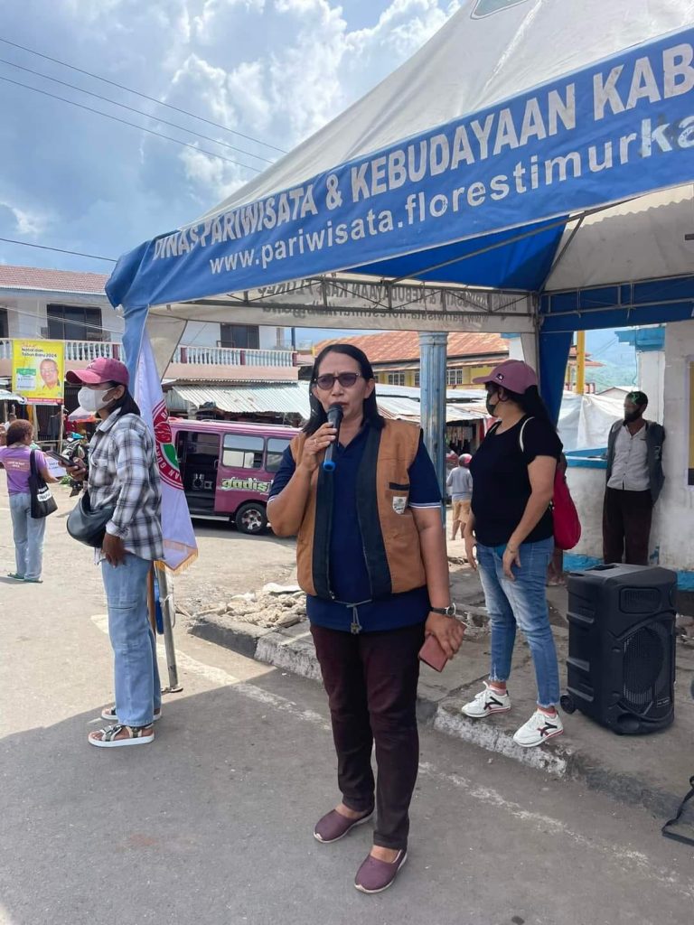Sekitar pukul, 09.30 Wita, dipandu oleh Koordinator Lapangan (Korlap) Thomas Are tim bergerak menuju ke perempatan Pasar Inpres Larantuka. Berbekal pengeras suara, secara bergantian, Yeni Ndajang, Ancis Toulwala, Engki Keban, Sofi Kean, berorasi mengajak dan mengetuk warga Kota Larantuka yang melintas di lokasi tersebut.
