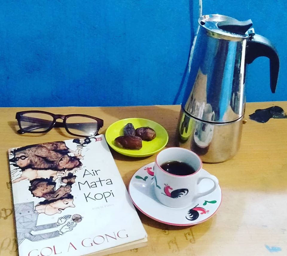 Setelah cetakan pertama habis, Gramedia menerbitkannya. Cetakan pertama habis. Buku puisi “Air Mata Kopi’ ini bergulir ke mana-mana. Saya menghadiri bedah bukunya dan ikut membacakan beberapa puisinya. Ada banyak puisinya yang dialihwahanakan ke dalam musikalisasi puisi. Misalnya Mukti Mukti dari Bandung.