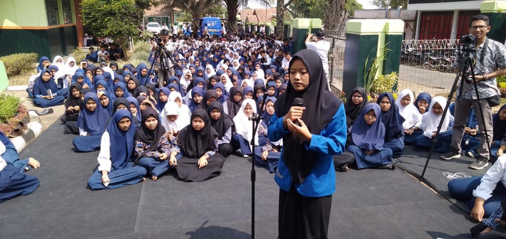Berlanjut Kamis 5/4/2019, kami menuju SMPN 4 Darangdan, Plered. Sekitar 500 pelajar berdialog tentang literasi. Tentu ada menu pembacaan puisi dari saya, Taufik Hidayatullah, dan para pelajar.