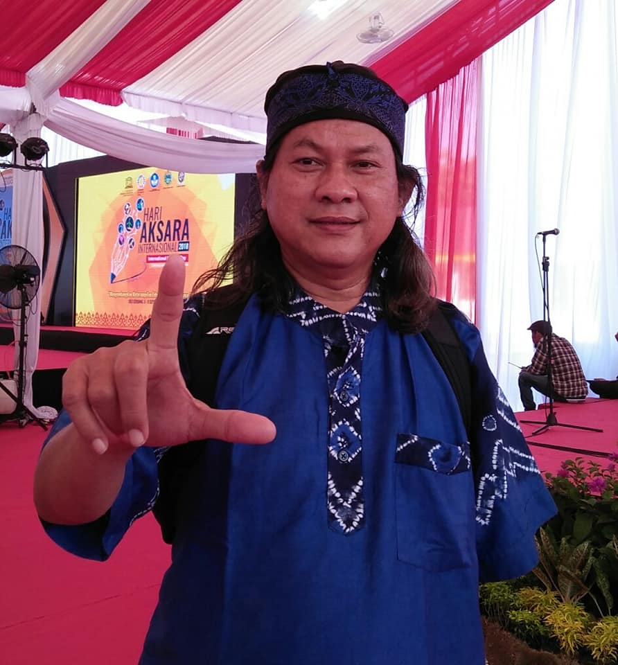 Pernah sampai kubeliin bando hitam polos biar rambut nggak jatuh-jatuhan ke wajah. Tapi bapack-bapack ini suka menghilangkan bandonya. Tapi, hubbyku ini lebih ska pake iket kepala atau udeng-udeng.