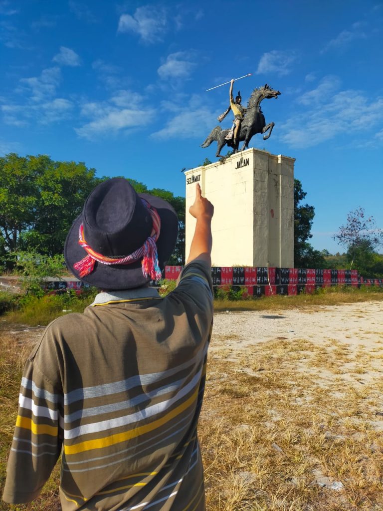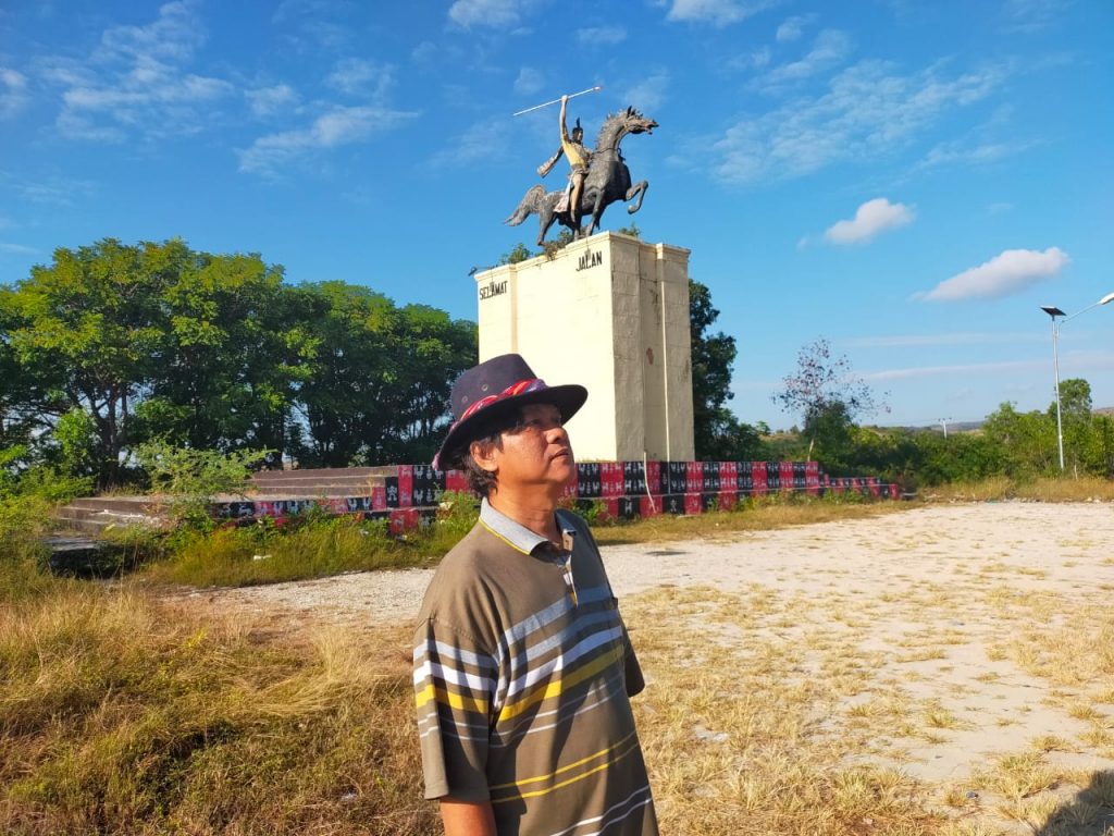 Setelah berfoto-foto, meluncur ke atas kota. Ada monumen lelaki Sumba menaiki kuda. Saya terkesan dengan patung-patung kuda ini. Ikonik. Itu menjadi karakter Sumba Timur. Kuda Sandal Wood sangat populer di sini sebagai kuda andalan.