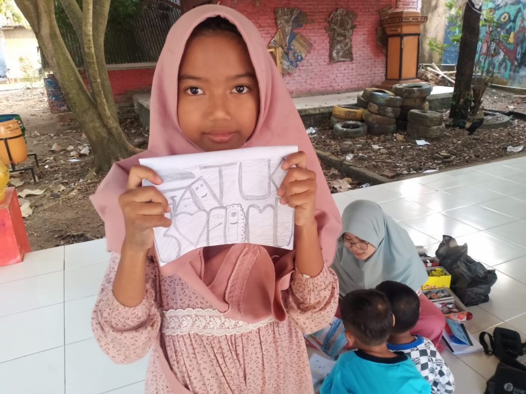 Sebelum wisata menggambar dimulai, Tias Tatanka sebagai guru pendamping menyarankan kepada anak-anak agar mandi sore terlebih dahulu.