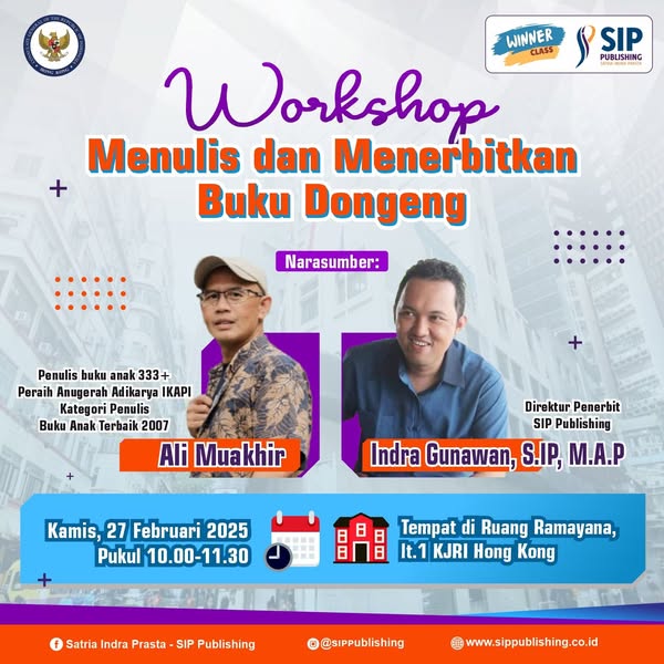 Mohon doanya, kami dari Satria Indra Prasta – SIP Publishing akan mengadakan workshop menulis dan touring ke Hongkong, Macau, dan Vietnam tanggal 23-28 Februari 2025