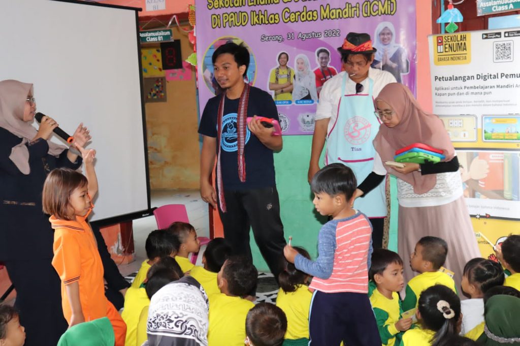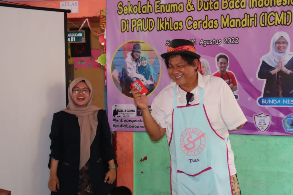 Kegiatan selanjutnya dengan Sekolah Enuma Bahasa Indonesia Senin 5 September 2022 di Pandeglang. Nah, TK/PAUD siapa yang beruntung didatangi celemek ajaib Paman Gong, ya? Ayo, siapa mau? Kontak Tias di 0819 06311 007.