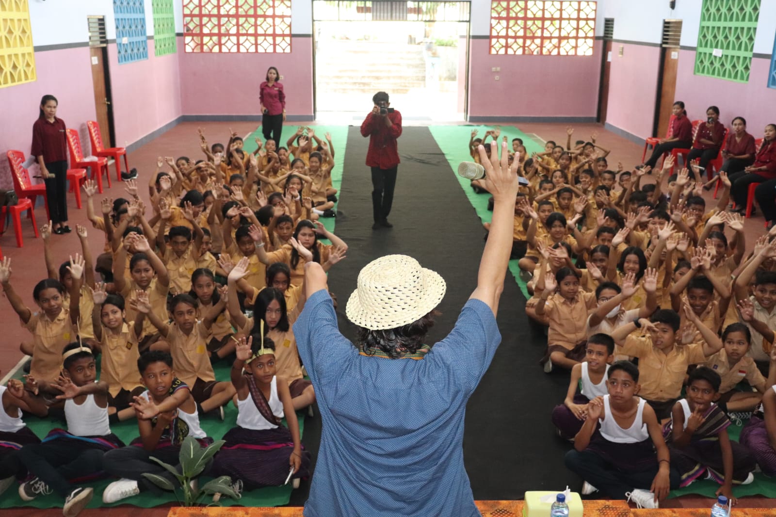 Duta Baca Indonesia, Gol A Gong berbagi cerita manfaat membaca dan menulis kepada 277 siswa SD Katolik La Mennais, Larantuka, Flores Timur.