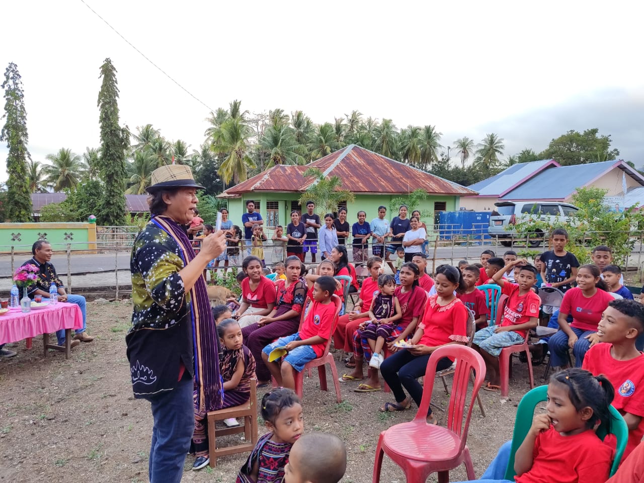 Gol A Gong pada kesempatan itu banyak berinteraksi dengan masyarakat Desa Kolaka, mulai dari anak-anak hingga orang tua.