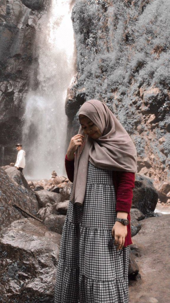 Setelah puas berfoto kami melanjutkan perjalanan menuju air terjun melewati tangga beton yang sudah dibangun oleh penduduk setempat meskipun hanya setengah, belum sepenuhnya sampai bawah. Lagi-lagi saya merasa salah kostum disini karena belum tau medan yang bakal di lalui. Ternyata bukan sekedar medan naik kendaraan saja yang perlu di perhatikan dan pertimbangkan tetapi medan di lokasi wisata juga perlu di searching.