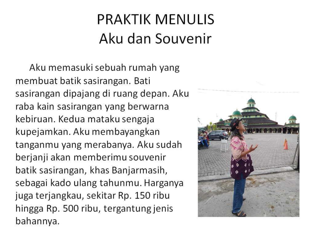 Banyak turis atau pelancong lokal dan mancanegara, jika mendatangi sebuah kota pasti mencari oleh-oleh makanan atau souvenir seperti kaos, gantungan kunci, kain khas, dan pakaian tradisionalnya. Kita membuat foto atau videonya untuk kenangan. Tapi biskah menuliskannya dalam bentuk travel writing atau catatan perjalanan? Baca contoh i gambar bawah ini: