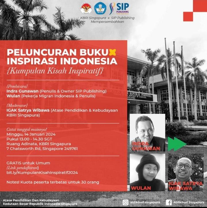 Buku ini merupakan hasil pelatihan menulis kisah inspiratif dengan narasumber Gol A Gong (Duta Baca Indonesia), yang diselenggarakan oleh Atase Pendidikan dan Kebudayaan KBRI Singapura bekerjasama dengan SIP Publishing pada tanggal 22 Oktober 2023.