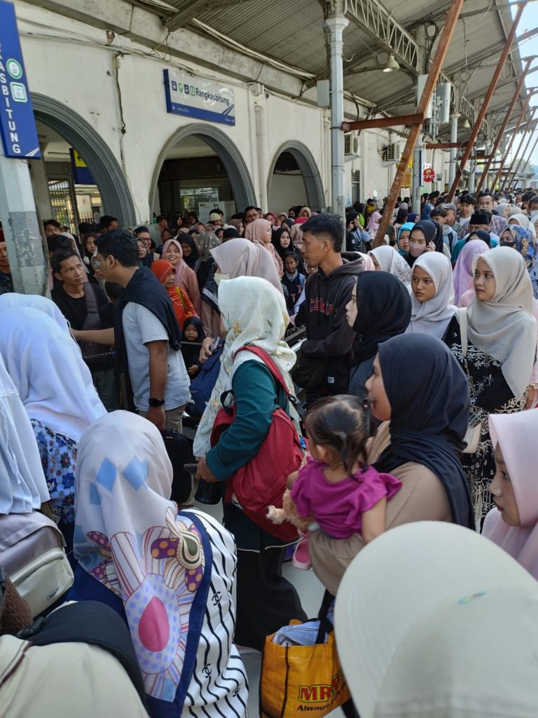 Tiba di Rangkasbitung luar biasa ramai. Penumpang menuju Merak sudah berjubel memasuki kereta yang tadi aku tumpangi.