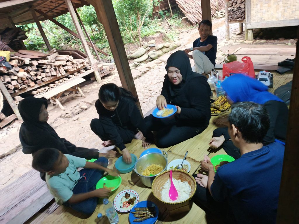 Pukul 17.00, kami kembali ke rumah Yayat. Sesampainya di sana, kami langsung makan. Nasi dan lauk yang kami beli di Ciboleger tadi dimasak oleh istri Yayat, Sani.